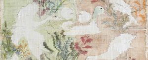 Capron was born in Milan, Italy, in 1981 to Peruvian and Colombian parents, but the family later relocated, spending time in Colombia and Texas. From here Capron trained as a painter at the University of Houston School of Art, graduating in 2004, followed some years later by an MFA from California College of the Arts, completed in 2015. While she initially set out to become a painter, during her undergraduate degree Capron developed a deep passion for fabrics and clothing, as she explains, “I have always loved clothing and the fabrics that make it, but it was during my undergraduate degree that I started incorporating these materials into my work. I started going to thrift stores. I fell in love with the variety of colour, pattern, and texture I found there, and I wanted to bring that into my work.”