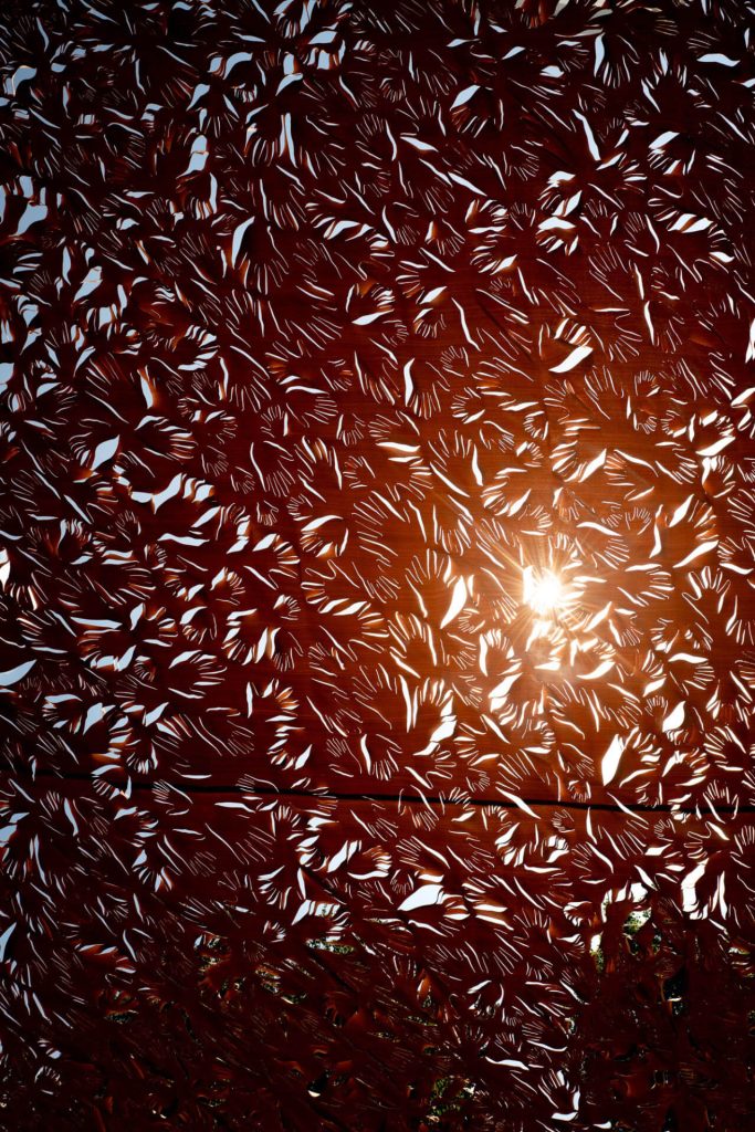 In 2021, Buro Bélen produced a monumental and visually striking laser cut curtain for the Dutch Pavilion at the Dubai World Expo 2021 using this unique fabric, with cut-out images of mangroves, oleanders, date palms and moringa, all indigenous to Dubai.