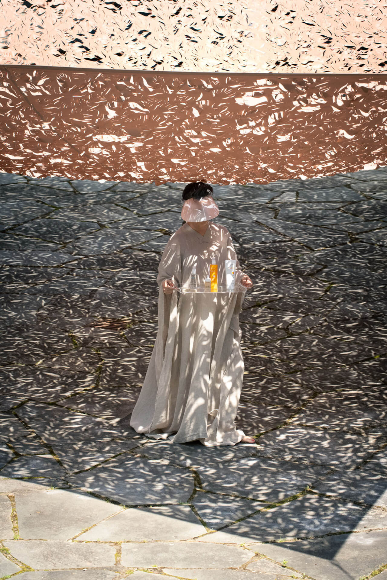 Buro Bélen introduced another bold new fabric innovation in 2018, with a line of all natural textile-based sunscreens, which they suggest as an alternative to artificial sunscreen lotions and polyester sun shades. Named SUN+, the project range includes clothing, a tent, and a parasol. Remarkably, their fabric provides protection against harmful UVA rays, while still allowing through beneficial amounts of UVB rays that provide us with vitamin D. They said, “Rethinking the physicality of sunscreen is key, as the sun is the source of our life.”