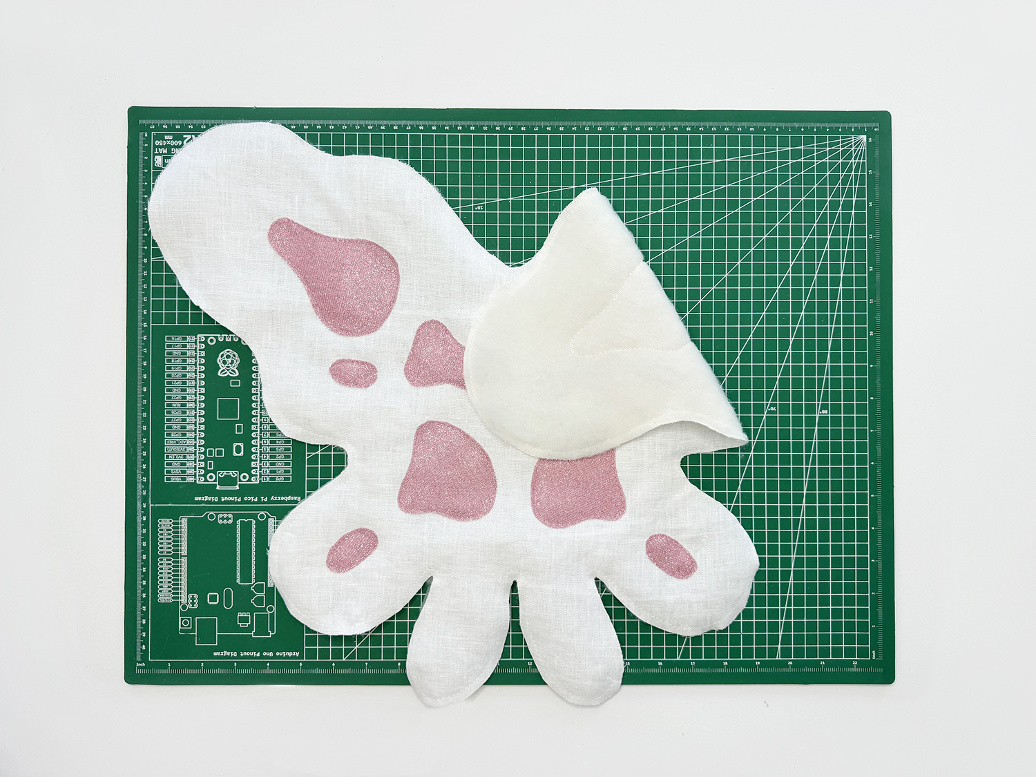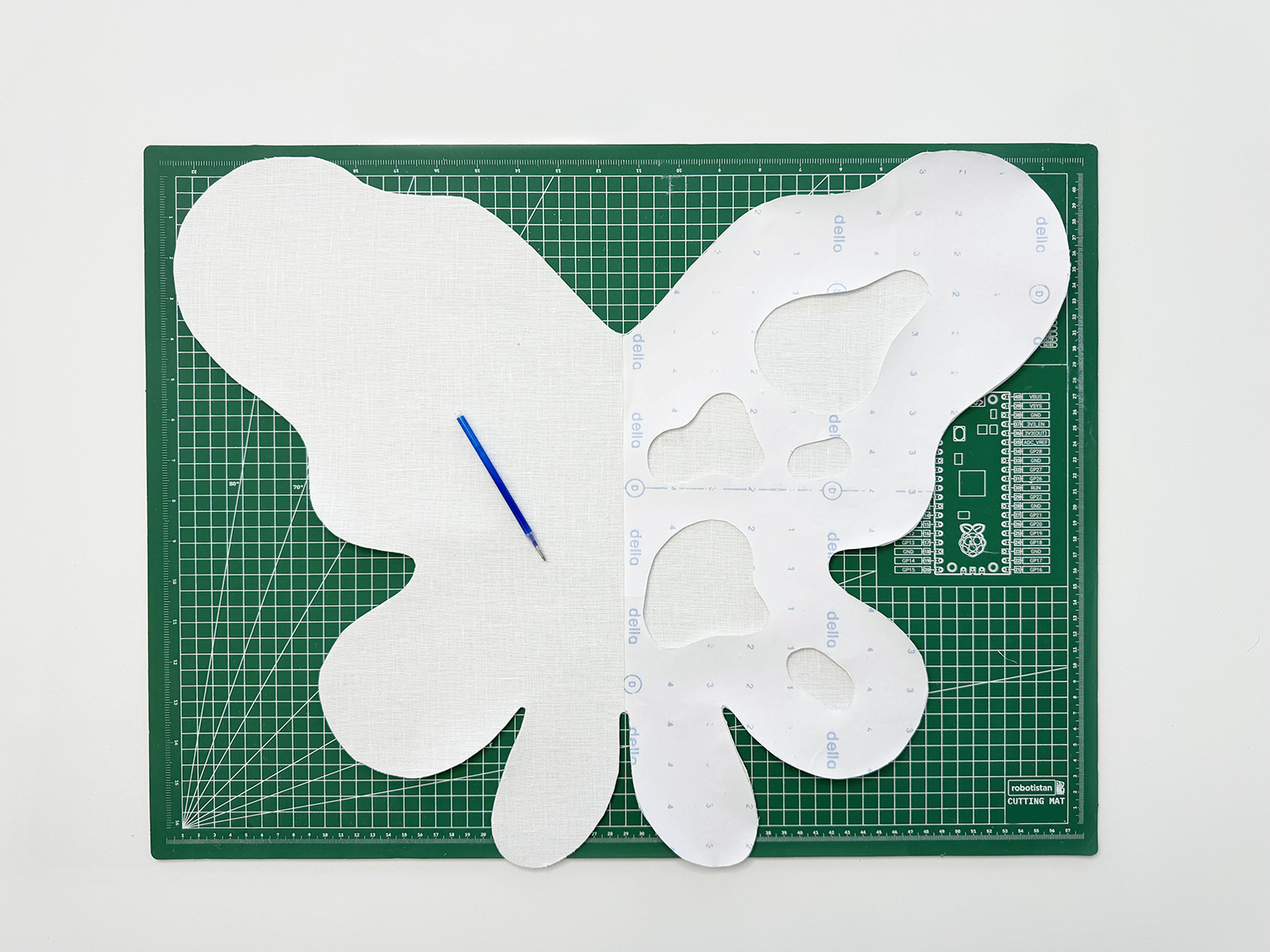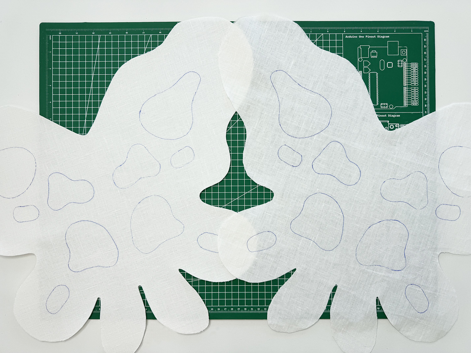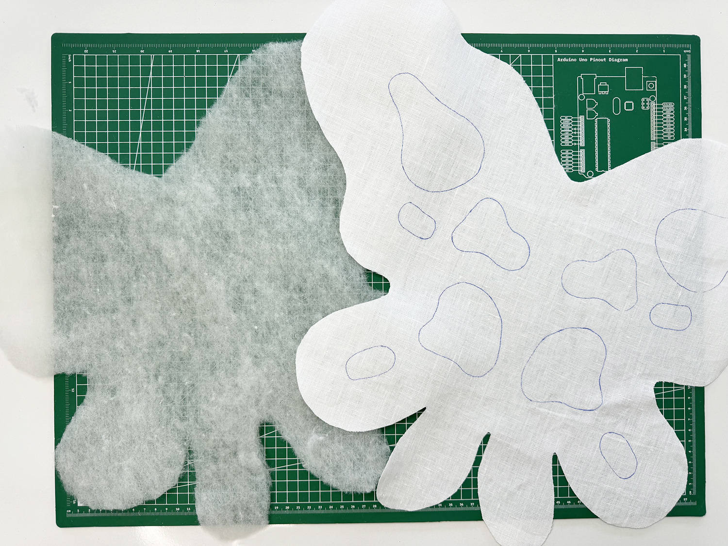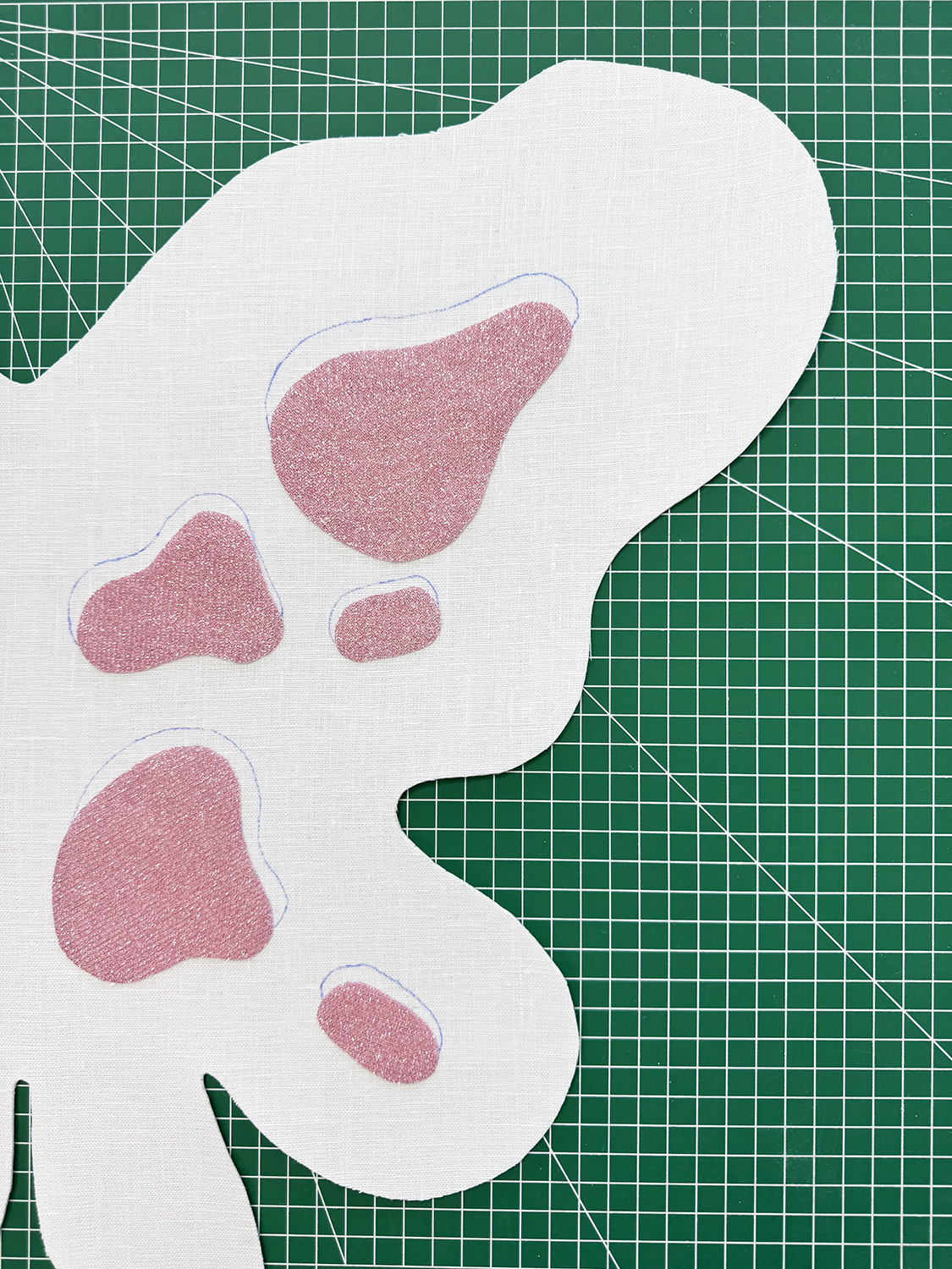 4. Next, cut out the ‘FRONT WING’ from the linen. You can also add a light interfacing on this side if you like. It’ll help keep the wings from stretching out when you move them around. Repeat Step 3, and trace the blob details onto the fabric.