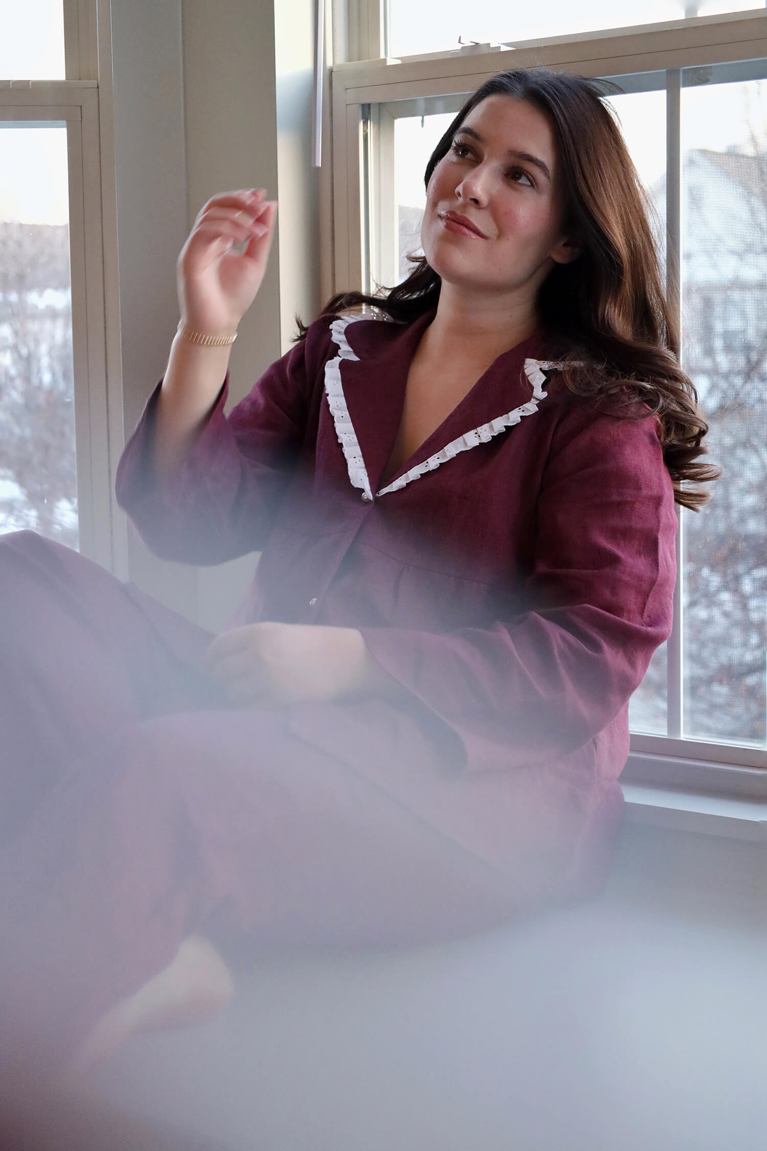 I chose a gorgeous purple linen and made a cute, comfortable set. For me, it’s very important to feel cute and comfortable all day long—whether I’m at home, sleeping, or out on the street.