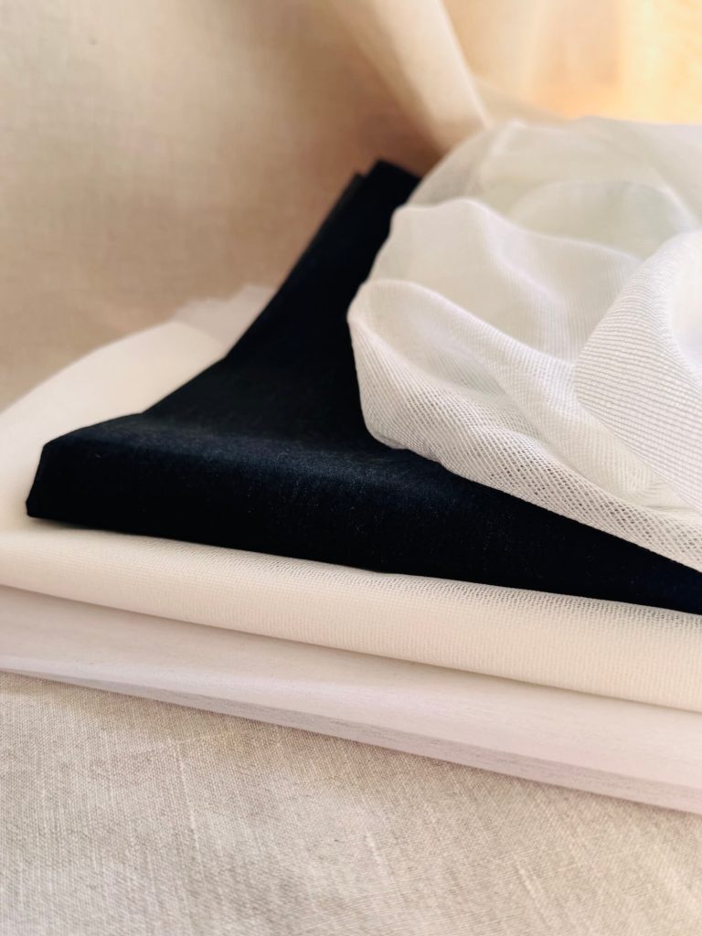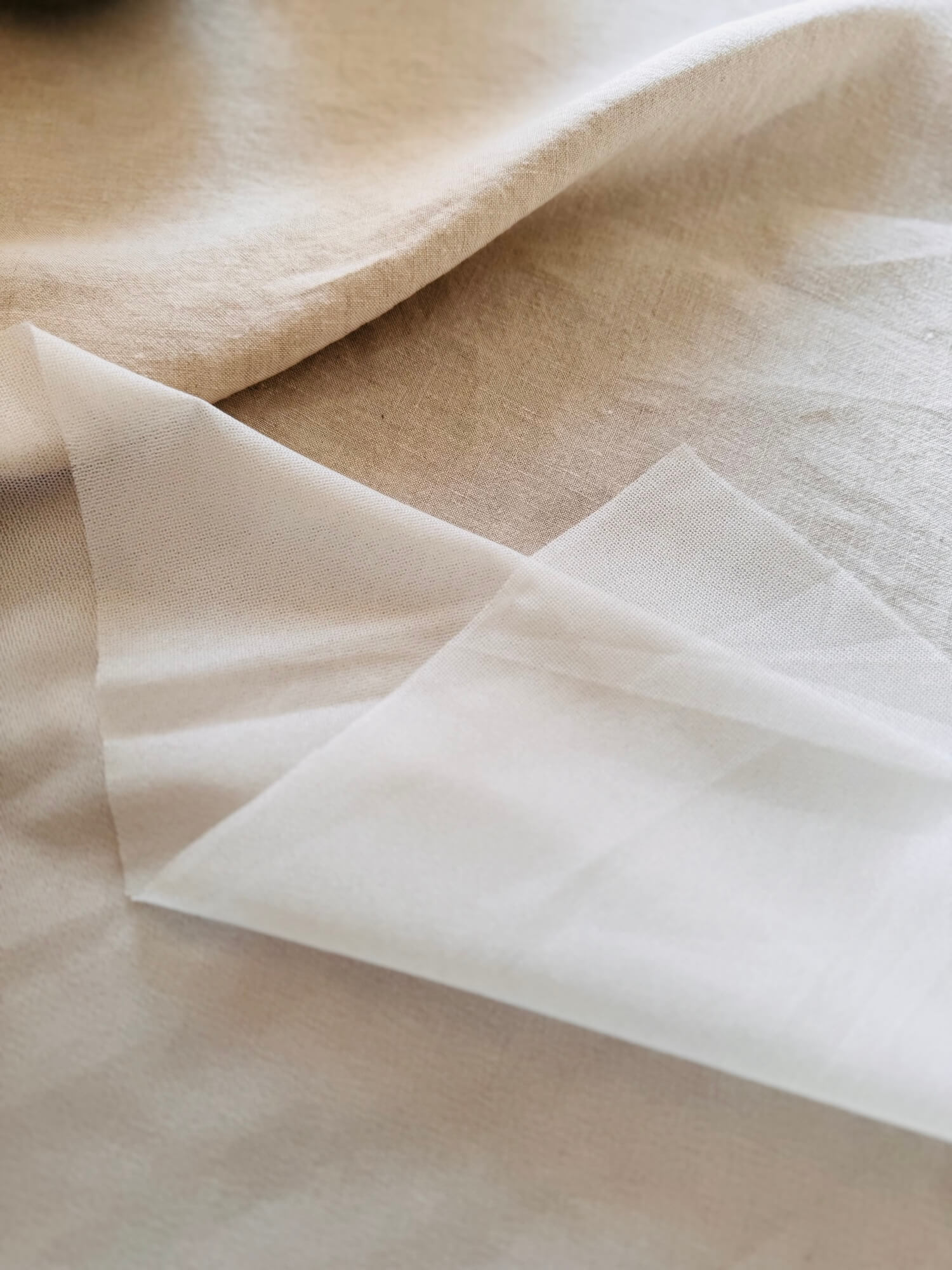 - Fabric as interfacing: As an alternative, lightweight fabrics like organza or cotton voile can be used as interfacing. This method is especially useful for delicate or sheer fabrics, where traditional interfacing might be too stiff, heavy or visible.