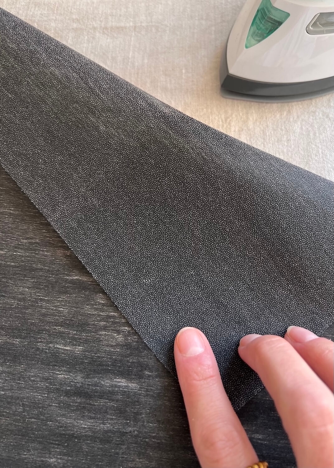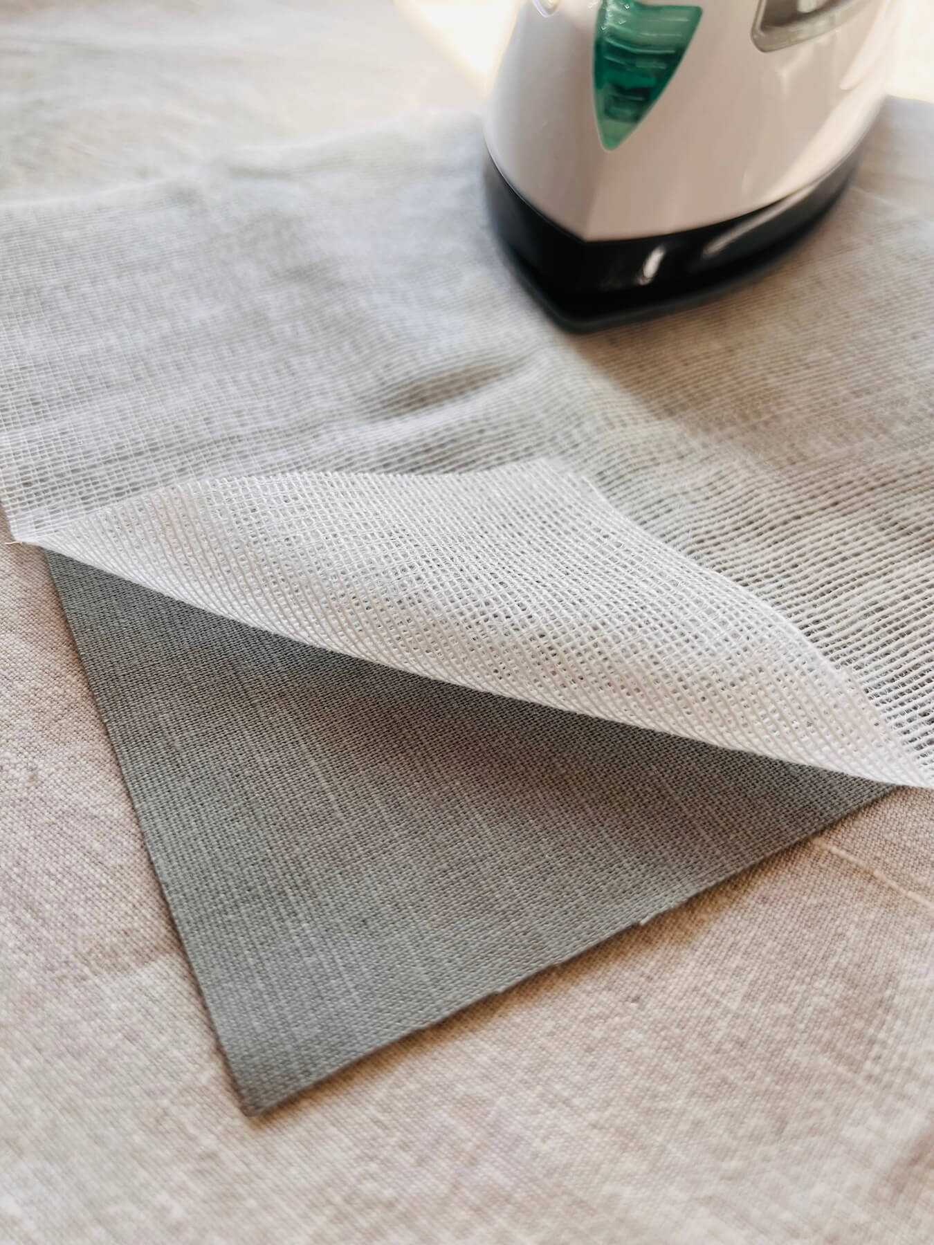 6. Press the interfacing in sections, holding the iron in place for a few seconds at a time before lifting and moving to the next section. Avoid sliding the iron as this can shift and wrinkle the interfacing.