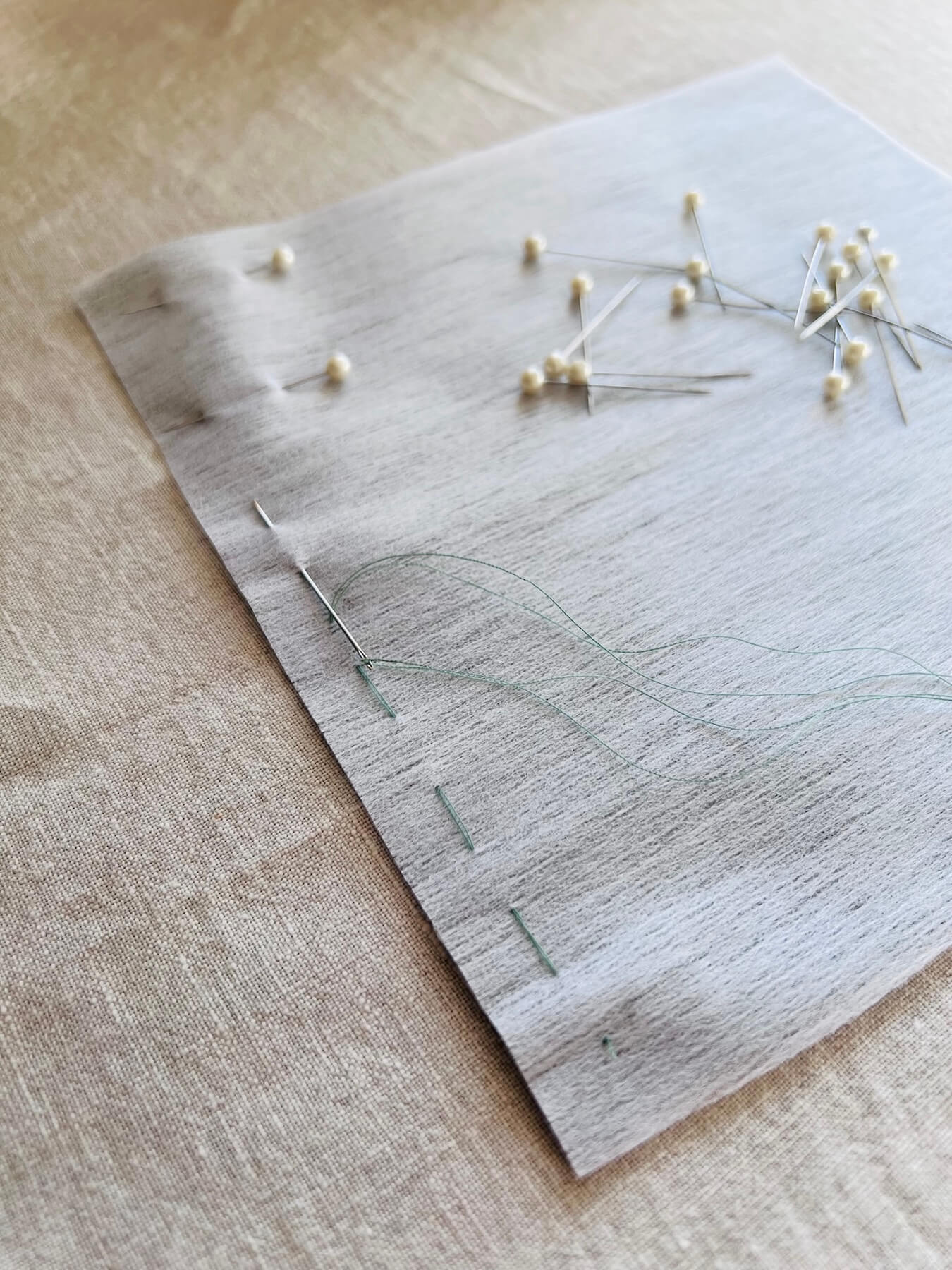 As the name suggests, sew-in interfacing, also known as non-fusible interfacing, is attached to fabric by stitching.
