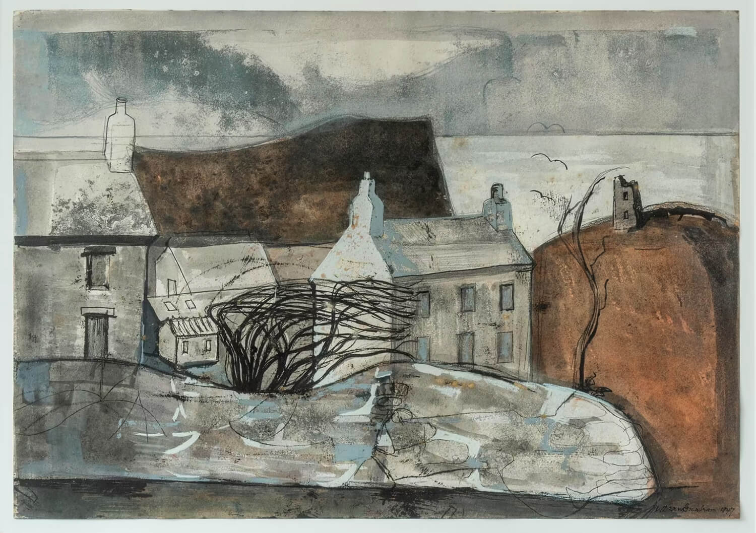 Born in St Andrews, Fife, in 1912, Barns-Graham attended Edinburgh College of Art during the 1930s. On the advice of Hubert Wellington, Principal of the college, she relocated to St Ives in Cornwall in 1940, and she would maintain a base here for the rest of her career. While living here she befriended like minded artists including Ben Nicholson and Bernard Leach, with whom she shared a deep connection to the landscape.